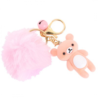 Brelok do kluczy Miś z pomponem Róż BRL164R