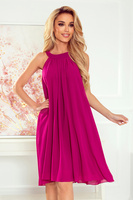 306-2 ROSITA Sukienka z kokardkami na ramionach i falbanką - ZIELEŃ BUTELKOWA