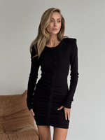 CHELLY - sukienka mini dopasowana z długim rękawem, zapinana na guziczki - czarna