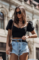 NICE - bawełniany top z bufkami na rękawach zapinany z tyłu - czarny