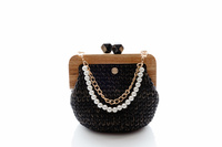 WYPOŻYCZENIE - elegancka torebka NUBAI pleciona z złotym łańcuszkiem i sznurem pereł - czarna z czarnym uchwytem