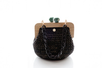 ( ilość produktów: 15 )NUBAI - elegancka torebka, pleciona z czarnym łańcuchem - czarna z zielonym uchwytem