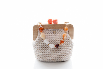 NUBAI - elegancka torebka, pleciona ze sznurem kolorowych kamieni - śmietankowa z pomarańczowym uchwytem