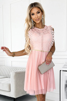425-2 MATILDE Sukienka z dekoltem i krótkim rękawkiem - PUDROWY RÓŻ Z BROKATEM