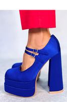 Czółenka na platformie satynowe PRANDI BLUE - Inello - niebieskie na słupku