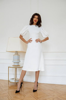 WYPOŻYCZENIE - sukienka LUXURYY EX elegancka rozkloszowana midi z bufiastymi rękawami, z zabudowanymi plecami - śmietanka