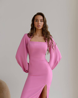 ( ilość produktów: 800 )WYPOŻYCZENIE - sukienka MALL elegancka i wyrafinowana z garniturowej tkaniny klasy PREMIUM, dopasowana midi z bufiastymi rękawami, z rozcięciem na nogę - różowa