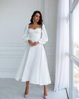 WYPOŻYCZENIE - sukienka SALLY EX rozkloszowana midi z bufiastymi rękawami z kwadratowym dekoltem - śmietankowa biel