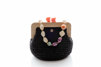 ( ilość produktów: 800 )PRZYMIARKA - elegancka torebka NUBAI pleciona ze sznurem kolorowych kamieni - czarna z pomarańczowym uchwytem